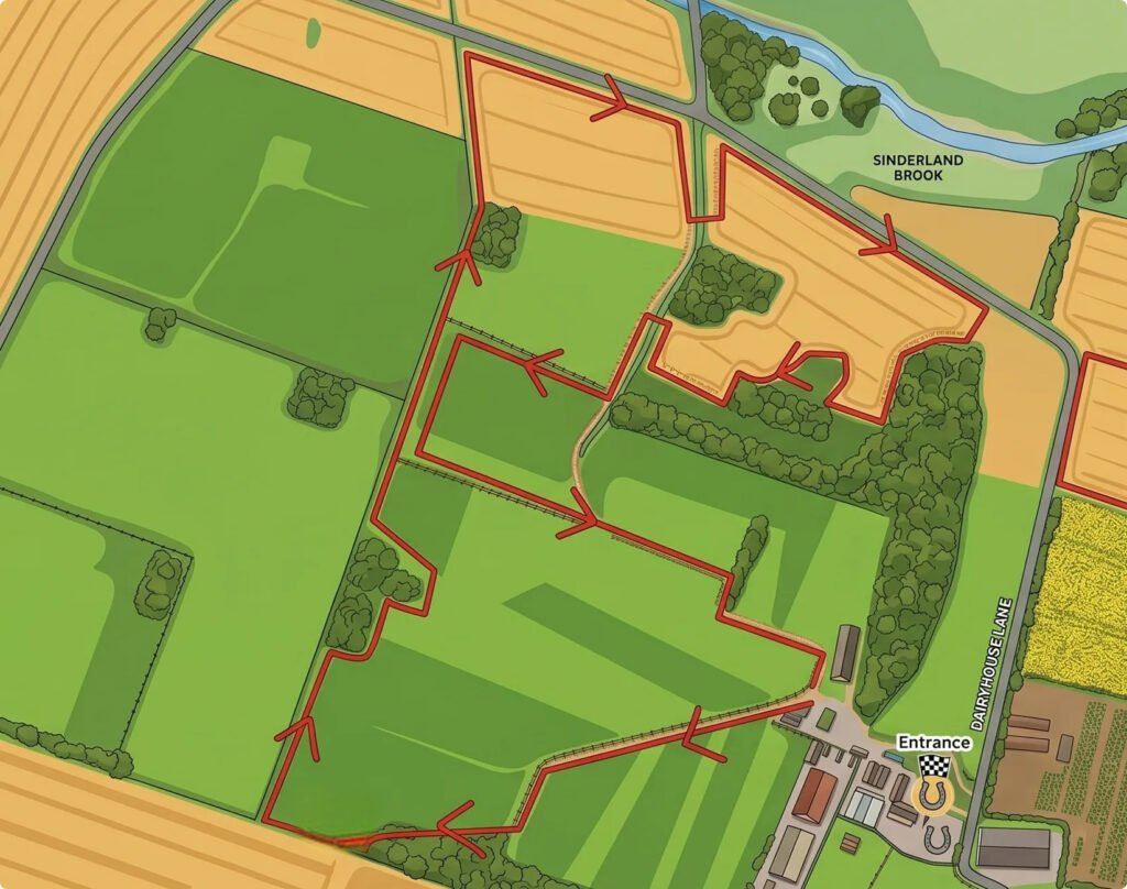Enjoy a fantastic Farm Ride across the stunning Cheshire countryside at Dairy House Farm. The ride features two scenic circuits through beautiful open fields and hedgerows, with clear signage throughout to keep you on track. It’s a brilliant day out for the whole family, and particularly well suited to younger riders. Book your ride easily below and come and explore the farm on horseback!